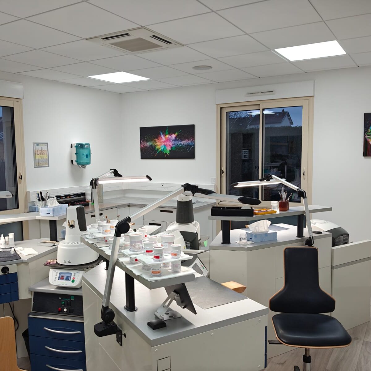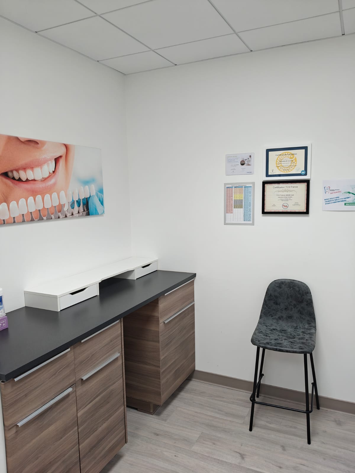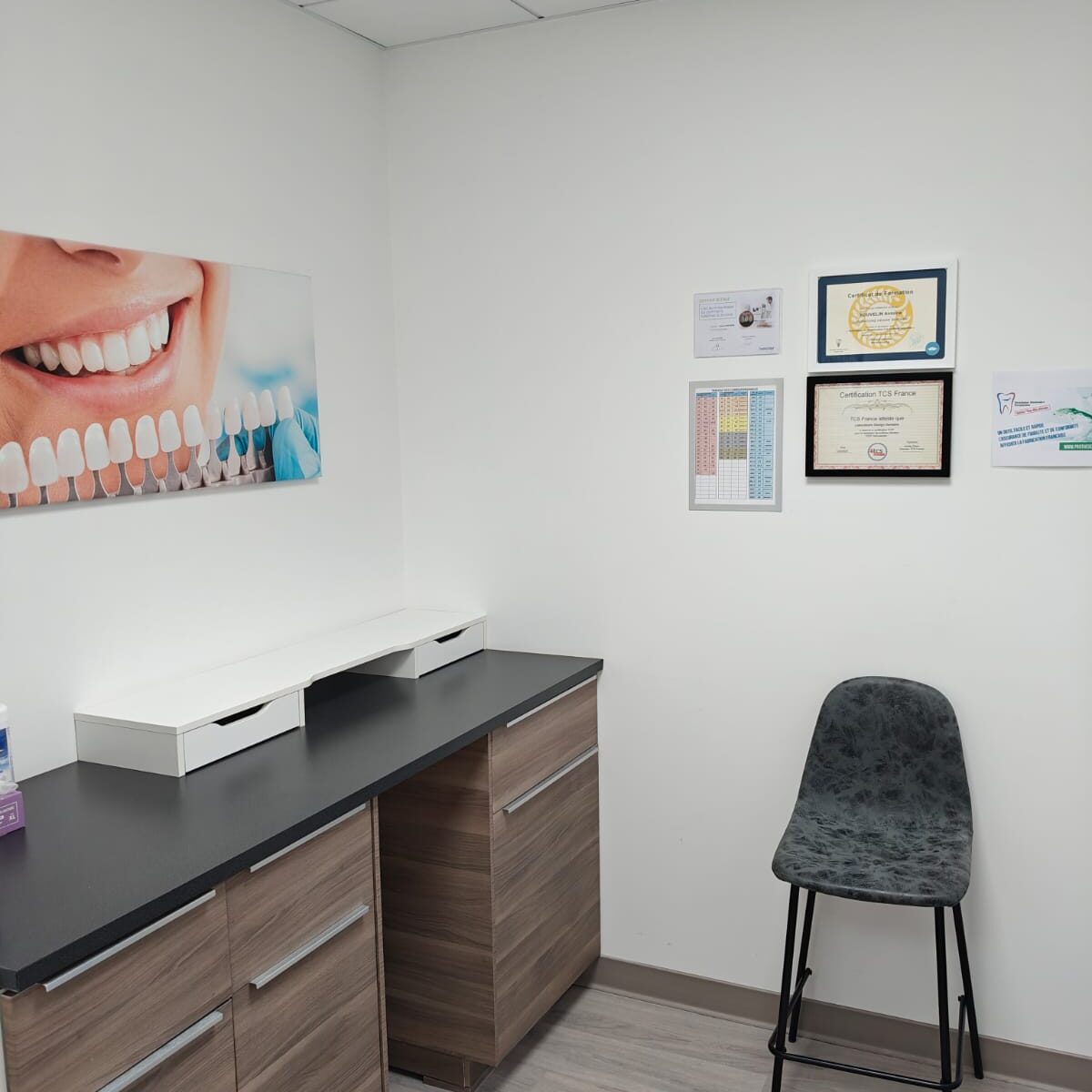 Chez Design Dentaire, nous accordons autant d’importance à la qualité de travail qu’à la qualité de nos réalisations. C’est pourquoi nous avons conçu un environnement moderne, spacieux, ergonomique et agréable, pensé pour le flux de travail et le confort au quotidien.