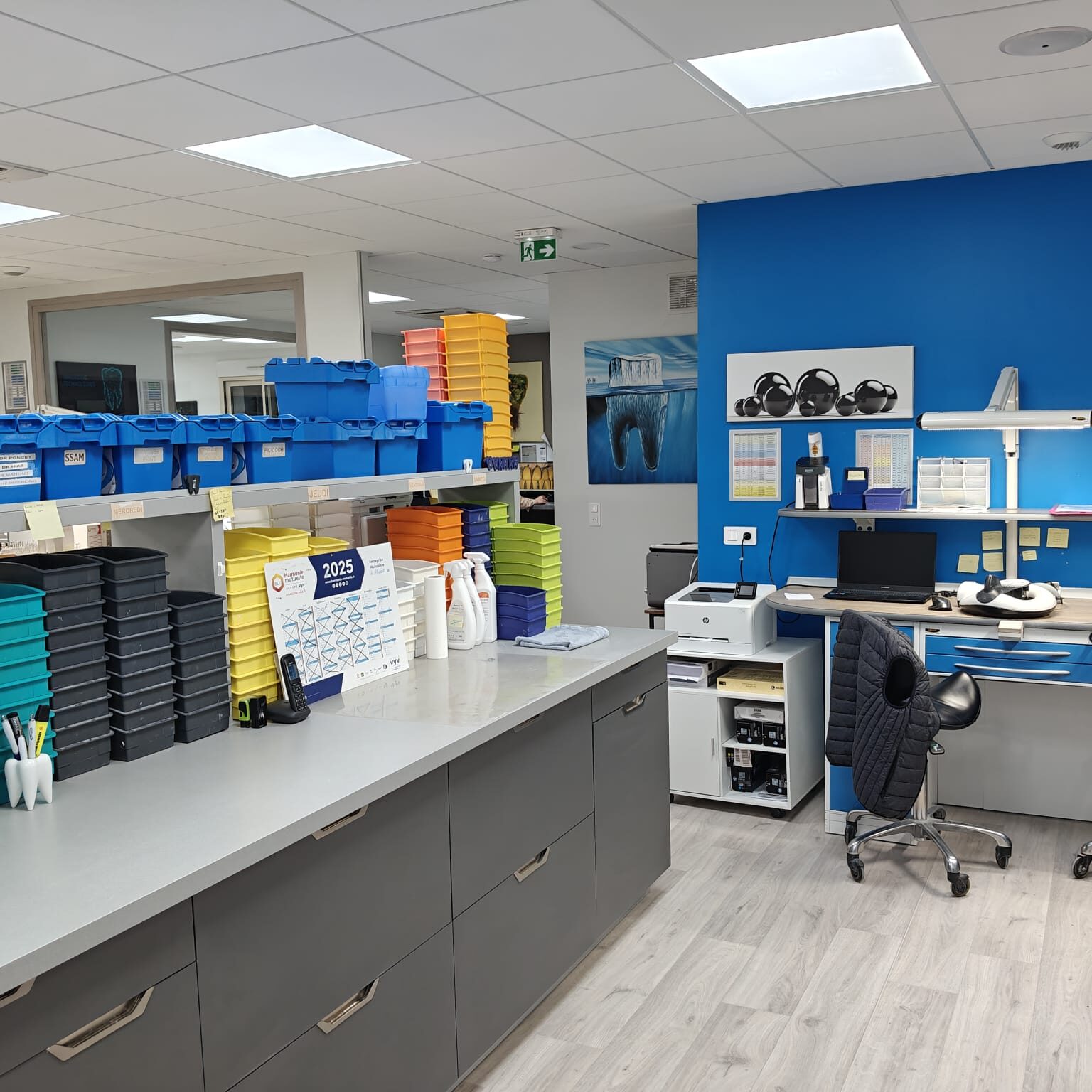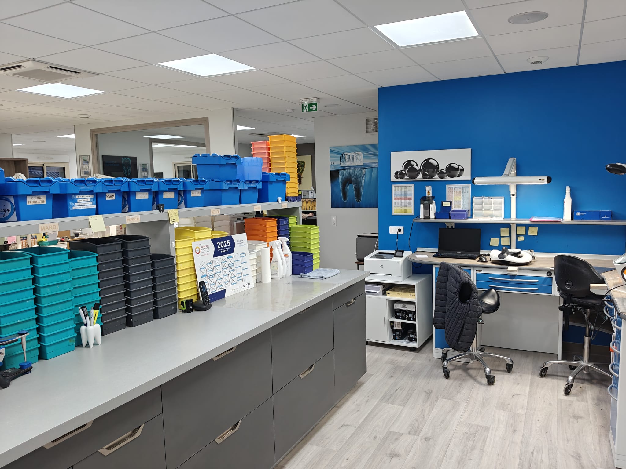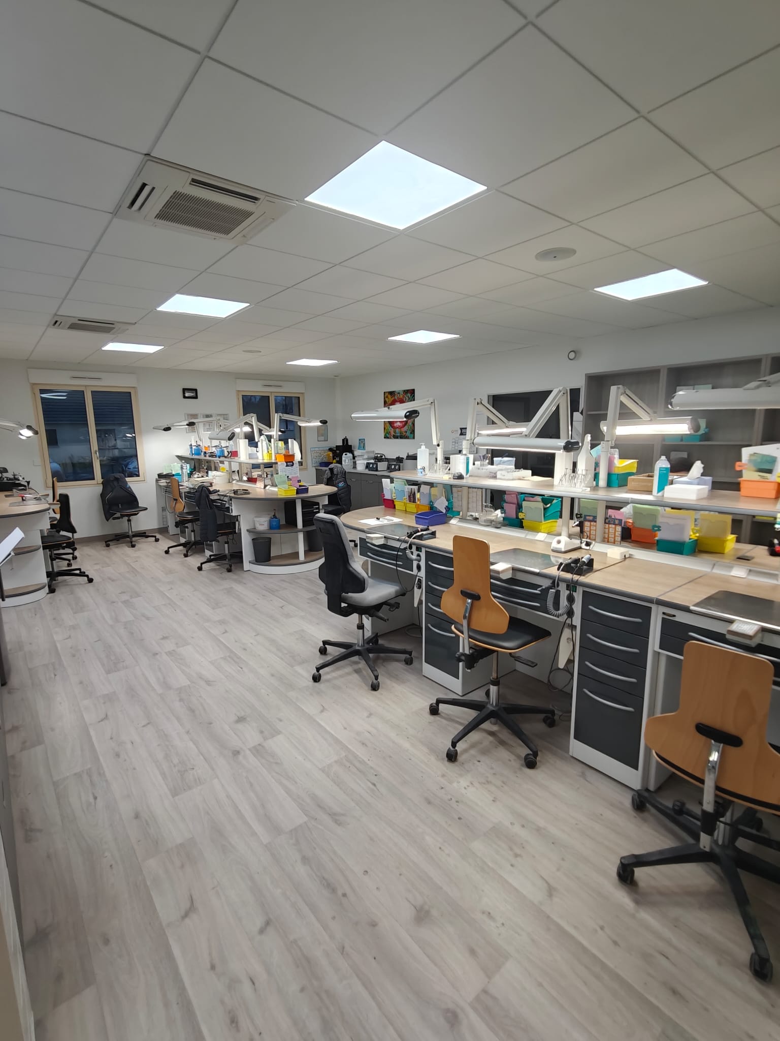 Travailler chez Design Dentaire, c’est aussi évoluer dans un environnement qui donne envie de venir le matin. Nos locaux ont été pensés pour offrir un cadre moderne, spacieux, lumineux et ergonomique, avec une organisation orientée efficacité… et confort.