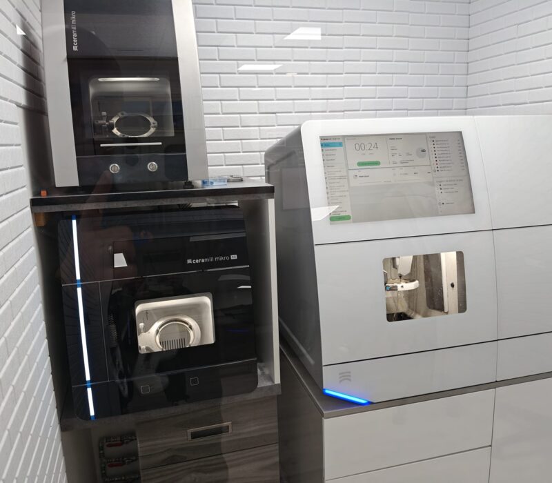 En 2018, Design Dentaire franchit une nouvelle étape en s’équipant de son premier système CFAO, avec scanner de table et unité d’usinage 4 axes. Avec l’agrandissement de l’équipe et l’évolution du parc machines, les locaux deviennent progressivement trop étroits et limitants pour la progression du laboratoire.